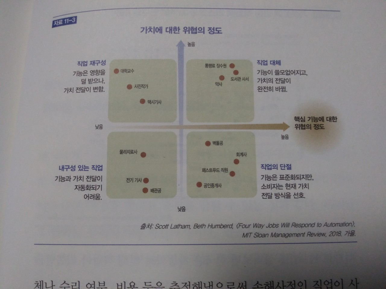 인공지능의 발달로 인해 사라지거나 축소되는 직업군들은 의외로 지식서비스 직군들이 포함되어 있기때문에 사회적 구성과 직군 변화가 이루어지게 되면 많은 혼란이 발생하기도 할 것이다.
