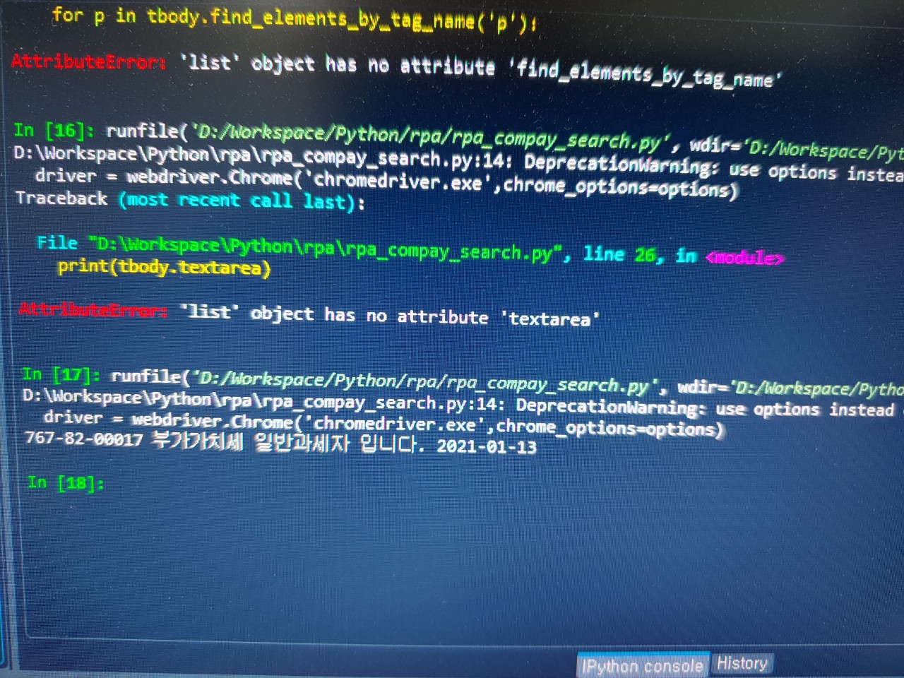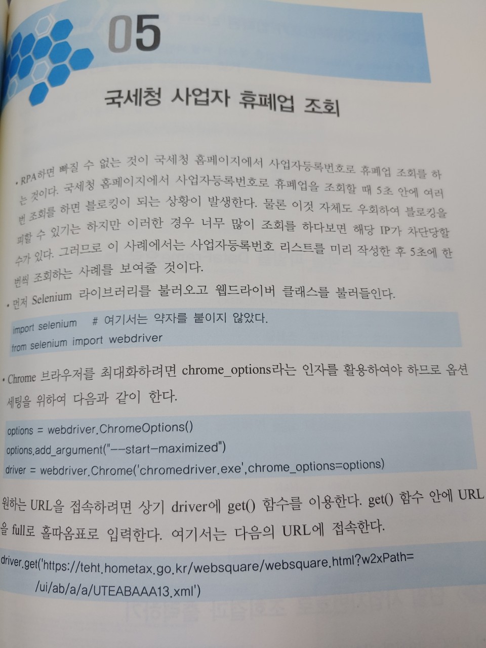 파이썬 문법은 나에게 따로 필요없어 기본 라이브러리 설치 후 가장 간단해 보이는 국세청에서 사업자 번호 조회를 따라해보았는데 역시 한방에 실행되는 경우는 없었다. 책의 오류라기 보다는 인터넷을 검색해보니 아마 그 사이 어떤 정보가 변경된 것 같은데 자세한 내용은 좀더 공부해 봐야 할 것 같다.