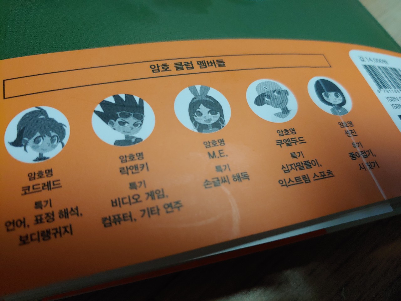 암호를 다루는 이야기인만큼 주인공들은 자기만의 암호명과 전문분야들을 가지고 있어서 컴퓨터 암호를 잘 푸는 사람, 문자 메시지 해독을 잘하는 사람, 단어 퍼즐을 잘하는 사람, 한자어나 스페인어 같은 외국어가 특기이거나 모스부호와 수화를 잘하는 사람처럼 다양한 언어에 대한 지식을 가지고 활동하는 맴버들로 구성되어 있다.