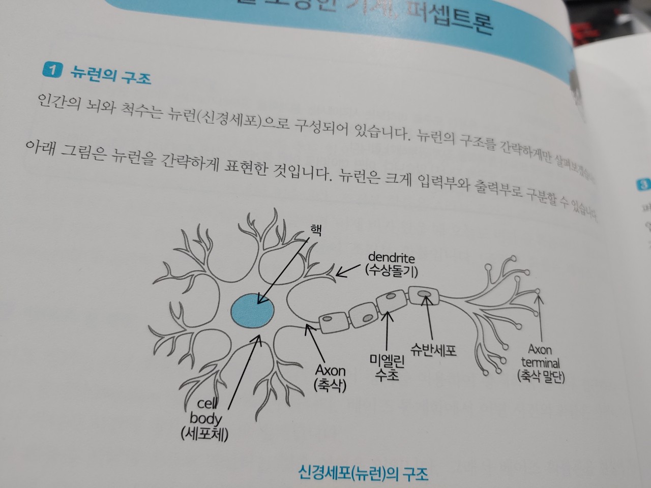 그리고 아무리 수학을 몰라도 된다고 했지만 인공지능 기술을 사용하기 위해 필요한 기초적인 수학적 개념을 설명하지 않을 수는 없으니 인공지능과 통계학의 관계가 어떤 관계인지 설명하고 신경세포인 뉴런을 모델로 만들어진 퍼셉트론 구조에 대해서도 개념적인 설명을 하고 있다.