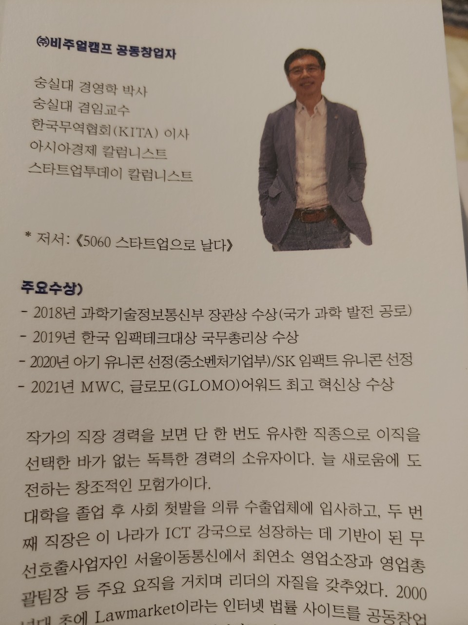 저자는 경영학 박사이면서 ICT회사를 시작으로 여러 회사를 거처서 2014년 50대에 미래의 유니콘 기업을 꿈꾸는 스타트업을 창업하여 이끌고 있는 대표로서 스타트업 창업에 대한 경험과 노하우를 설명하기 위한 책이다.