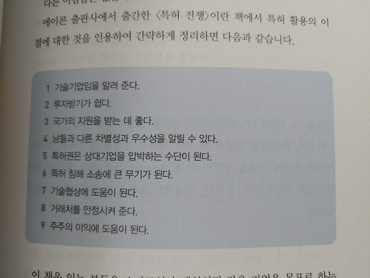 책의 첫장에선 특허를 실제 사업으로 연결해 돈을 벌었던 사람들에 대한 소개가 나온다. 편리한 형제의 김근형 대표부터 김기사와 야놀자를 일군 대표들의 이야기 서울역 노숙자가 되어서도 재기의 꿈을 잃지 않았던 에스보드강신기 대표까지 단지 특허로 돈을 벌었다기 보다는 자신이 성공할 발판을 열심히 찾았고 특허가 그 밑거름이 되었다는 것은 분명해보인다.
