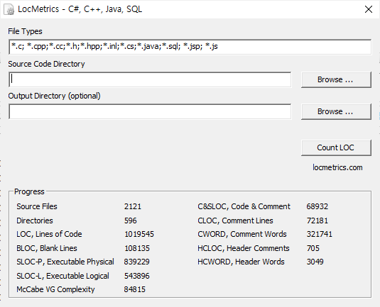 [Software] LocMetrics - Source Code Line 수 측정해주는 프로그램