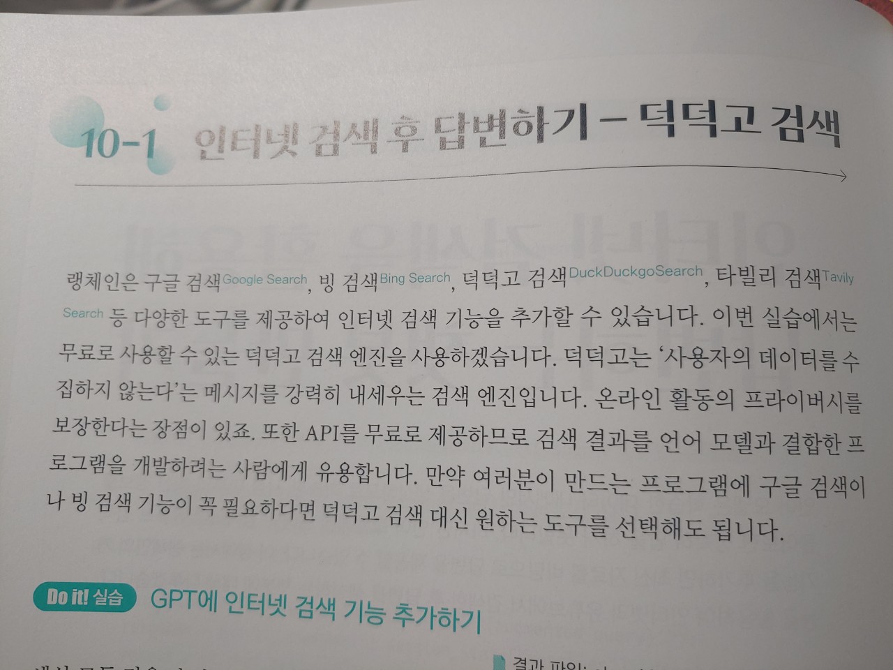 랭체인을 다루는 부분에 들어서면 본격적으로 RAG를 기반으로 쳇봇을 구현하면서 스트림릿으로 쳇봇을 완성하는 과정으로 단계적으로 구현하고 나서 인터넷 기사 검색이나 유튜브 영상을 요약하는 예제를 통해 여러가지 다양한 도구를 접목해 에이전트를 고도화하는 과정을 보여준다.