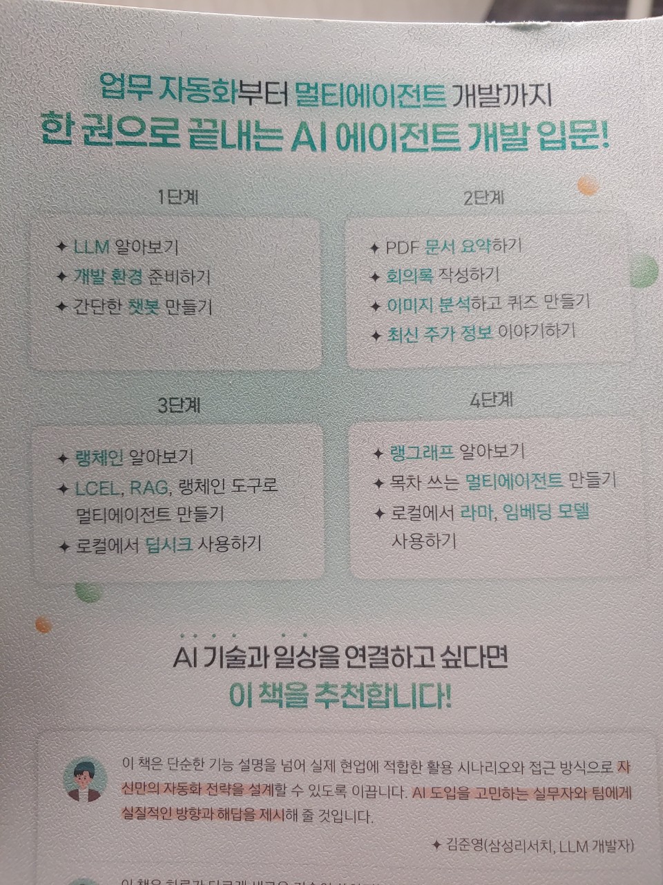 AI 에이전트에 대한 내용들이 쏟아지고 있다. 에이전트가 대세로 굳어지면서 랭체인을 활용하거나 OpenAI API를 기반으로 에이전트를 구성하는 내용으로 책을 구성하는 경우가 많은데 실제로 실무와는 거리감이 느껴지는 내용들이라는 생각이 들었었다.