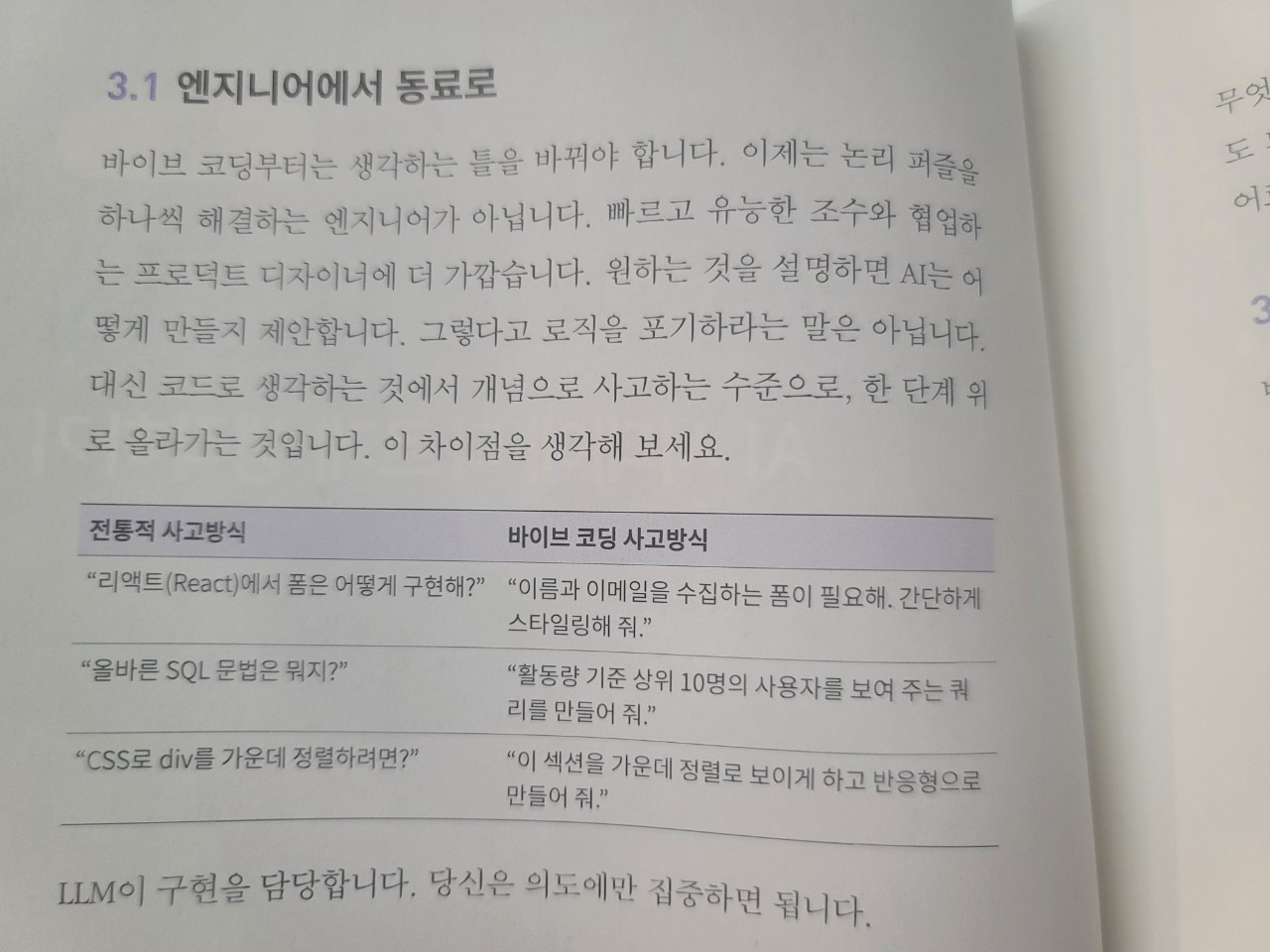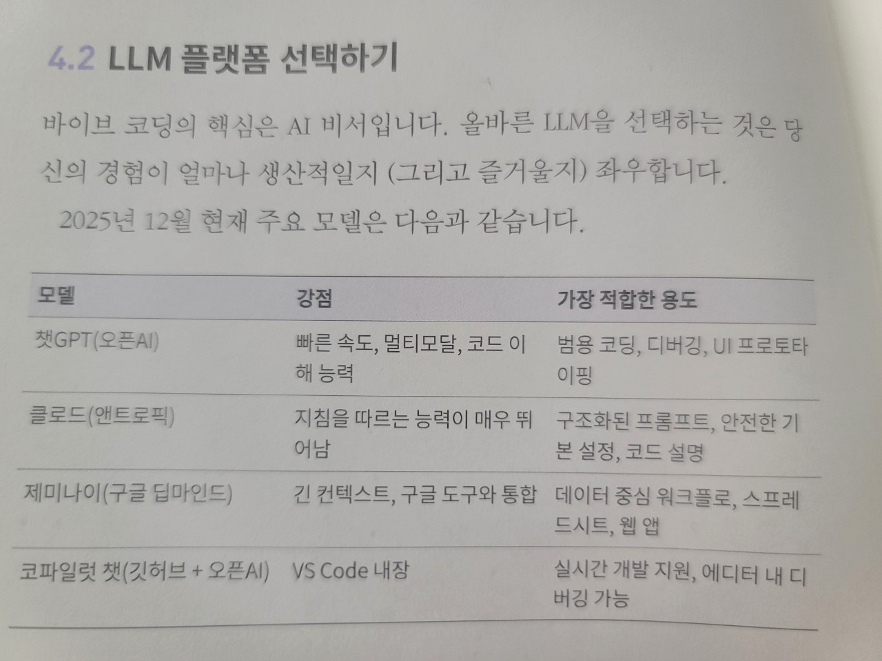 도입부의 마지막에는 도구를 넘어 AI를 활용하기 위한 프롬프트 실력을 키우고 윤리적으로 고려해야 할 사항까지 앞으로 바이브 코딩이 나아갈 방향에 대해 고민거리를 나열해 둔다.